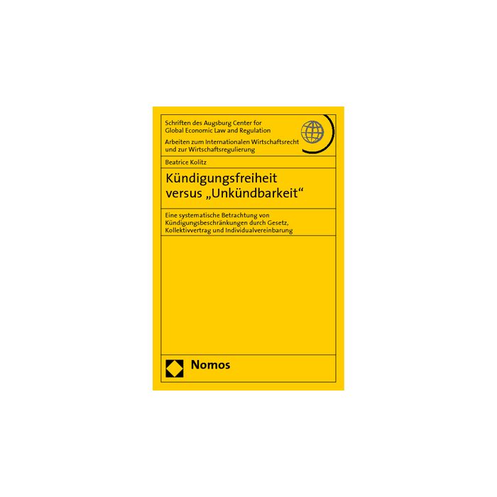 Die Autorin bietet eine systematische Aufarbeitung der verschiedenen Arten von Kündigungsbeschränkungen nach Art, Zielrichtung und Wirkungsweise unter besonderer Beachtung auch der tariflichen Unkündbarkeit.