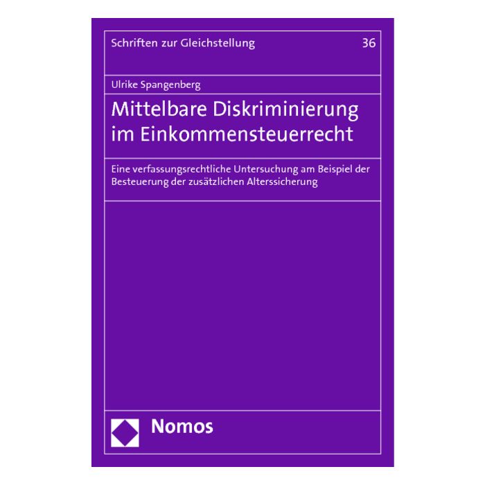 Die Studie knüpft an diese Erkenntnisse an und konkretisiert das verfassungsrechtlich verankerte Verbot mittelbarer Diskriminierung für das deutsche Einkommensteuerrecht unter Bezug auf steuerrechtliche und gleichstellungsrechtliche Wertungen. Anhand des auf diese Weise entwickelten Maßstabs werden beispielhaft Wirkungen und Verfassungsmäßigkeit der Besteuerung der zusätzlichen privaten und betrieblichen Alterssicherung diskutiert. Die Überlegungen geben neue Denkanstöße für eine gleichstellungsgerechte Ausgestaltung der deutschen Einkommensbesteuerung und damit auch für die – häufig auf Ausgaben fokussierte – Strategie des Gender Budgeting.