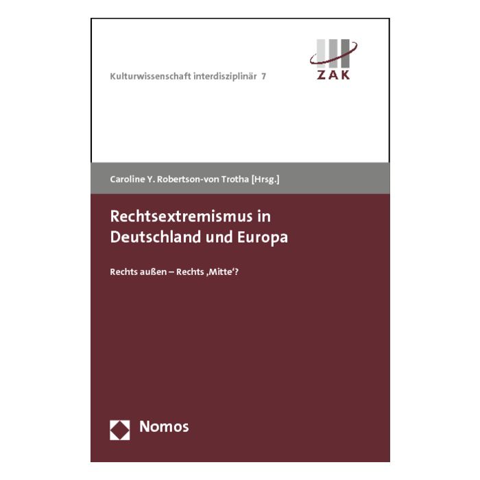 Mit Beiträgen von Reiner Becker, Renate Bitzan, Ronny Blaschke, Jean-Yves Camus, Wilhelm Heitmeyer, Rudolf van Hüllen, Michael Kohlstruck, Thomas Pfeiffer, Caroline Y. Robertson-von Trotha, Birgit Rommelspacher, Jens Rydgren, Britta Schellenberg, Cornelia Schmalz-Jacobsen und Volker Weiß.
