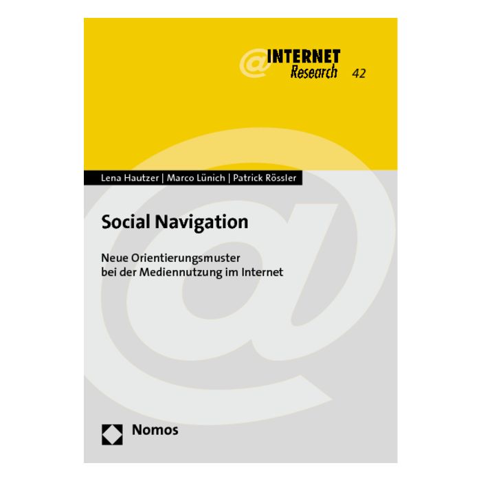 „Social Navigation“, die Orientierung der eigenen Mediennutzung am Verhalten Anderer und das Hinterlassen eigener Nutzungsinformationen, ist eines der aktuellen Phänomene im Internet. Auf Grundlage etablierter Ansätze der Kommunikationswissenschaft legt diese Studie eine umfassende theoretische Modellierung des Kommunikationsprozesses via „Social Navigation“ auf Mikro-, Meso- und Makroebene vor. Ausgewählte Aspekte wurden außerdem anhand eines Mehrmethodendesigns (Befragung und Inhaltsanalyse) in mehreren Piloterhebungen empirisch vertieft.
