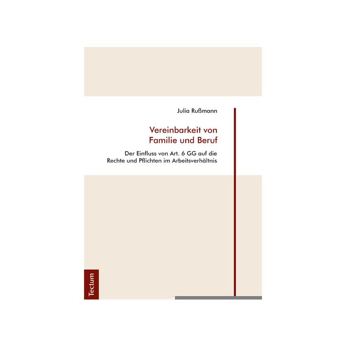 Die Vereinbarkeit von Familie und Beruf ist eine komplexe Aufgabe und Herausforderung für erwerbstätige Eltern und deren Arbeitgeber. Grundsätzlich kommt der Gesetzgeber seinem verfassungsrechtlichen Förderauftrag für Familien zwar nach, die Vielzahl diesbezüglicher Regelungen ist jedoch kaum zu überschauen. Julia Rußmann leistet eine umfassende Darstellung der zentralen gesetzlichen Regelungen zum Schutz der Familie und macht anhand einer rechtsvergleichenden Betrachtung des englischen Rechts konkrete Vorschläge, wie die Förderung der Vereinbarkeit von Familie und Beruf noch weiter vorangetrieben werden kann.