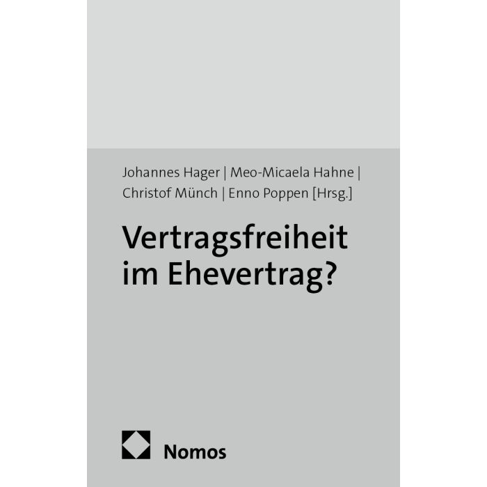 Der Tagungsband dokumentiert die Beiträge zum Thema der ehevertraglichen Gestaltungsfreiheit. Es wird versucht, mit einem interdisziplinären Ansatz aus richterlicher, notarieller und anwaltlicher Sicht, das Thema aus verschiedenen Blickwinkeln zu betrachten.